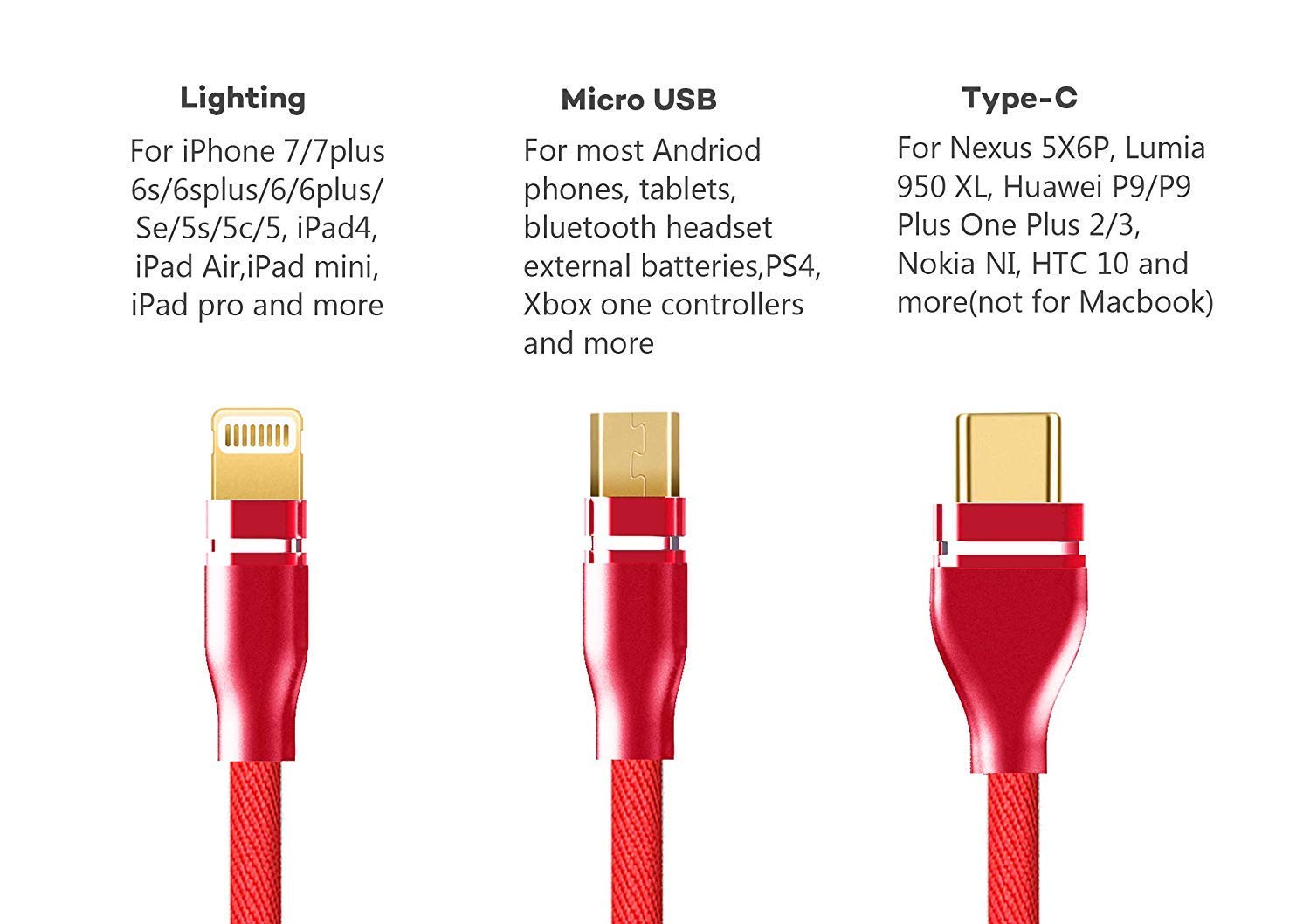 Wide Compatibility: This multi charger cable is widely used for office, home, car etc. in i-OS interface, Micro interface and USB-C interface of many equipments. Compatible with i-Phone X, i-Phone 8/8 Plus, i-Phone 7/7 Plus, Sam-sung Galaxy S8/S8 Plus, Bluetooth headphone, Power bank, Camera, Mac-book Pro, Goo-gle Pixel, Nexus 6P, and more other USB devices.But Please NOTE! This cable is only charging cable. No transferring data function
